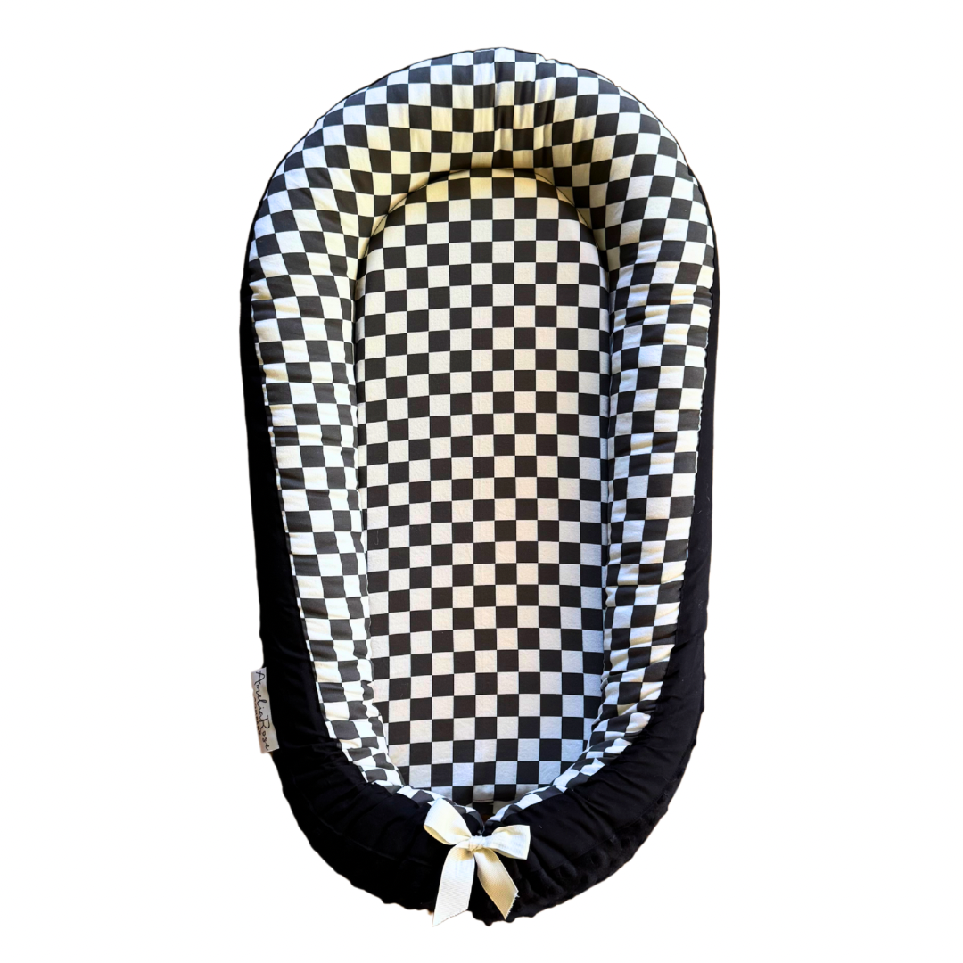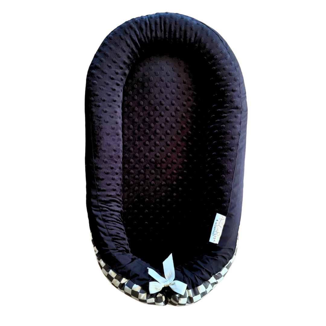 Give your little one a cozy place to lounge with our handmade Baby Nest. Thoughtfully designed to mimic the comforting feel of the womb, this nest creates a soft and secure spot for supervised awake time only. It’s reversible, featuring a custom-printed eco-friendly cotton fabric on one side and ultra-soft minky on the other. The bottom is secured with Velcro for easy removal of the mattress insert when it’s time to wash. Each Baby Nest is handmade and filled with hypoallergenic polyester fibers for comfort and support.