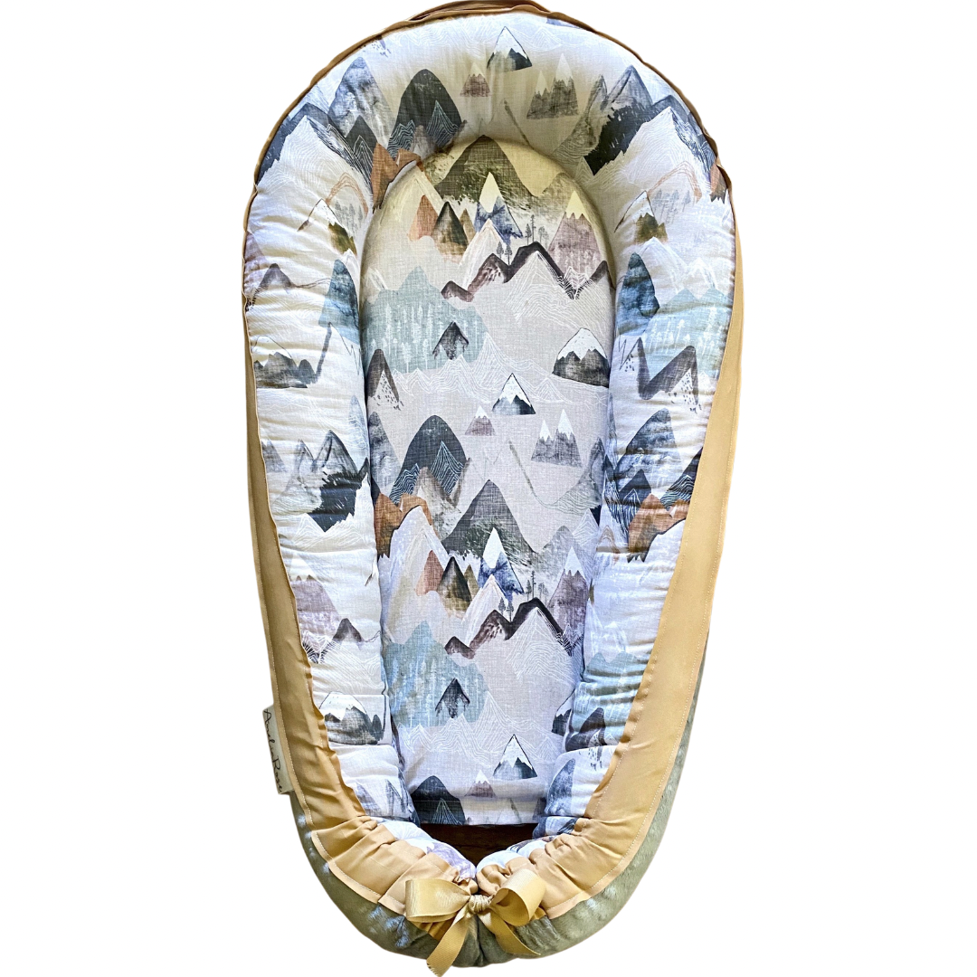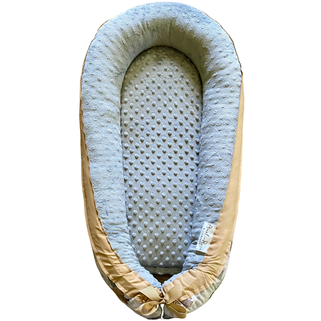 Give your little one a cozy place to lounge with our handmade Baby Nest. Thoughtfully designed to mimic the comforting feel of the womb, this nest creates a soft and secure spot for supervised awake time only. It’s reversible, featuring a custom-printed eco-friendly cotton fabric on one side and ultra-soft minky on the other. The bottom is secured with Velcro for easy removal of the mattress insert when it’s time to wash. Each Baby Nest is handmade and filled with hypoallergenic polyester fibers for comfort and support.