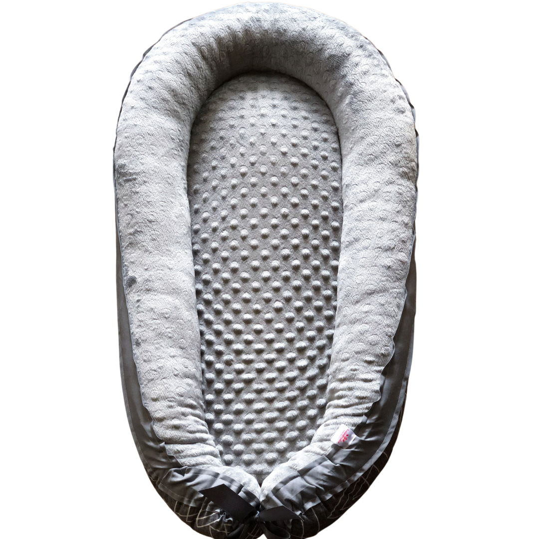 Give your little one a cozy place to lounge with our handmade Baby Nest. Thoughtfully designed to mimic the comforting feel of the womb, this nest creates a soft and secure spot for supervised awake time only. It’s reversible, featuring a custom-printed eco-friendly cotton fabric on one side and ultra-soft minky on the other. The bottom is secured with Velcro for easy removal of the mattress insert when it’s time to wash. Each Baby Nest is handmade and filled with hypoallergenic polyester fibers for comfort and support.