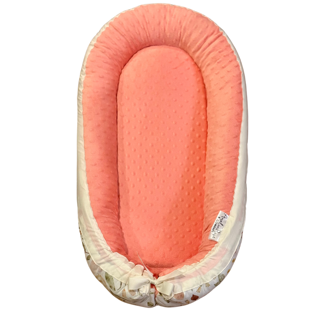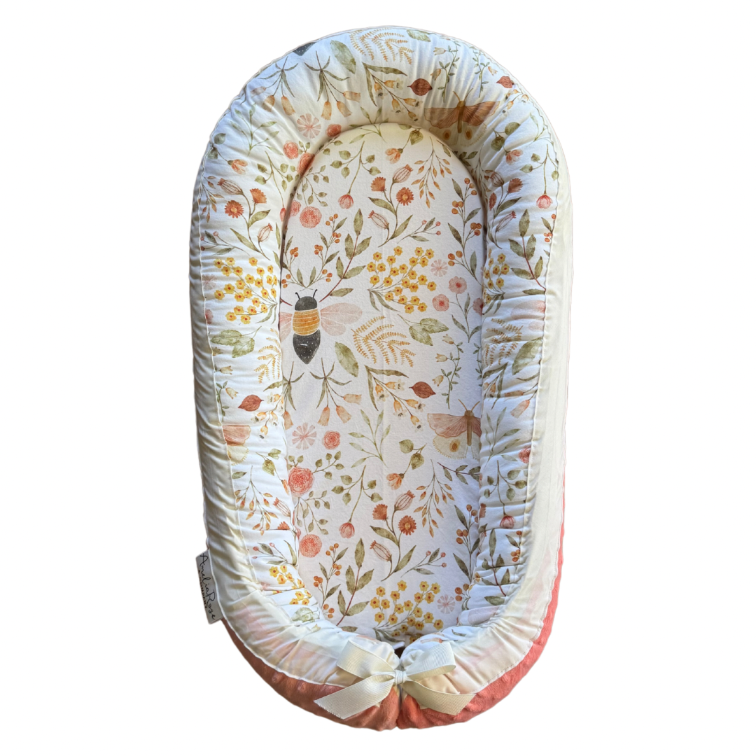 Give your little one a cozy place to lounge with our handmade Baby Nest. Thoughtfully designed to mimic the comforting feel of the womb, this nest creates a soft and secure spot for supervised awake time only. It’s reversible, featuring a custom-printed eco-friendly cotton fabric on one side and ultra-soft minky on the other. The bottom is secured with Velcro for easy removal of the mattress insert when it’s time to wash. Each Baby Nest is handmade and filled with hypoallergenic polyester fibers for comfort and support.