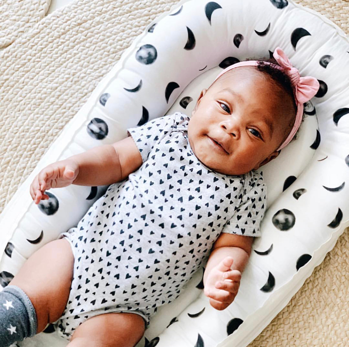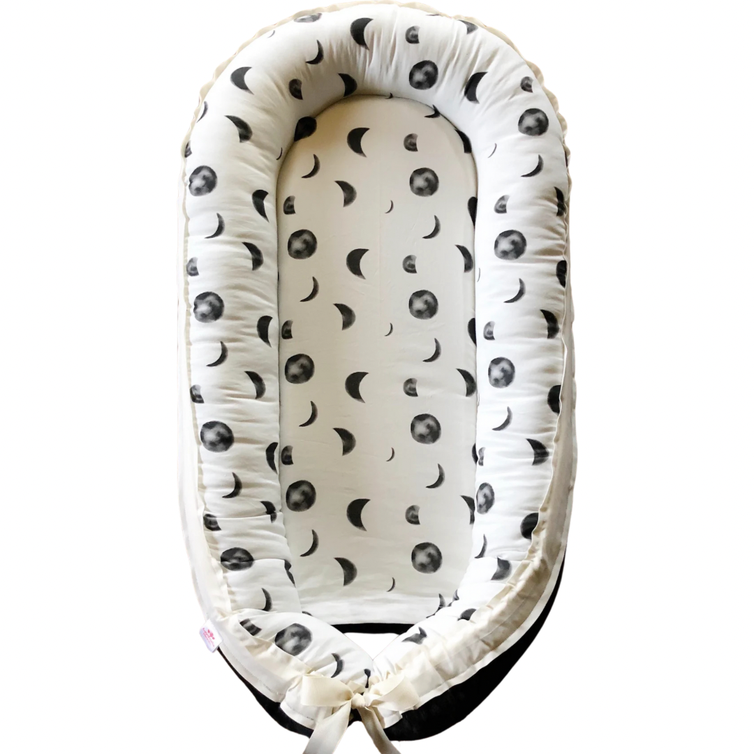 Give your little one a cozy place to lounge with our handmade Baby Nest. Thoughtfully designed to mimic the comforting feel of the womb, this nest creates a soft and secure spot for supervised awake time only. It’s reversible, featuring a custom-printed eco-friendly cotton fabric on one side and ultra-soft minky on the other. The bottom is secured with Velcro for easy removal of the mattress insert when it’s time to wash. Each Baby Nest is handmade and filled with hypoallergenic polyester fibers for comfort and support.