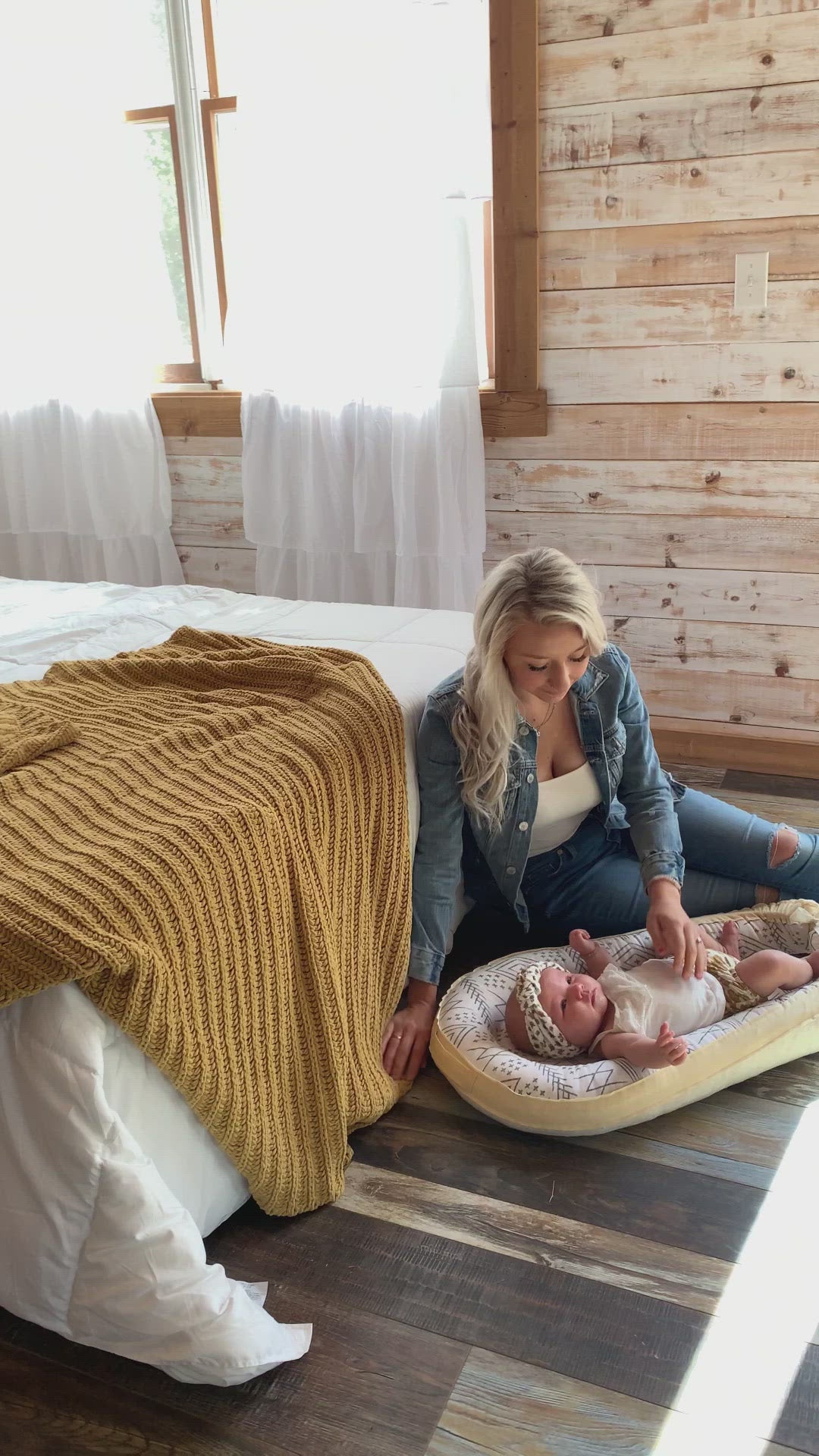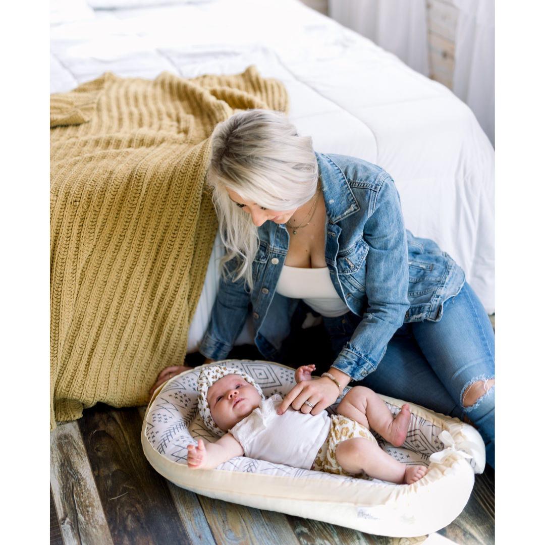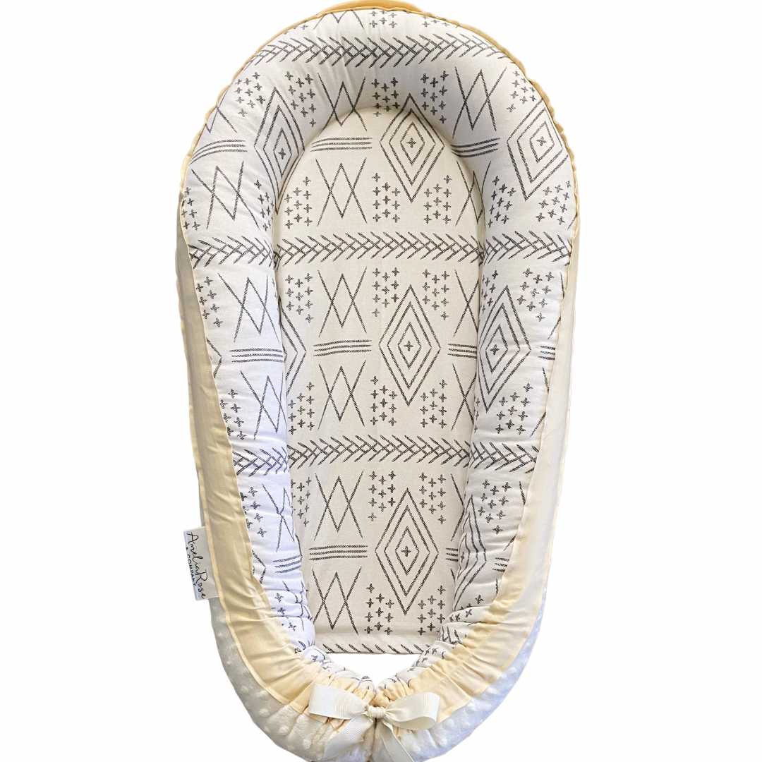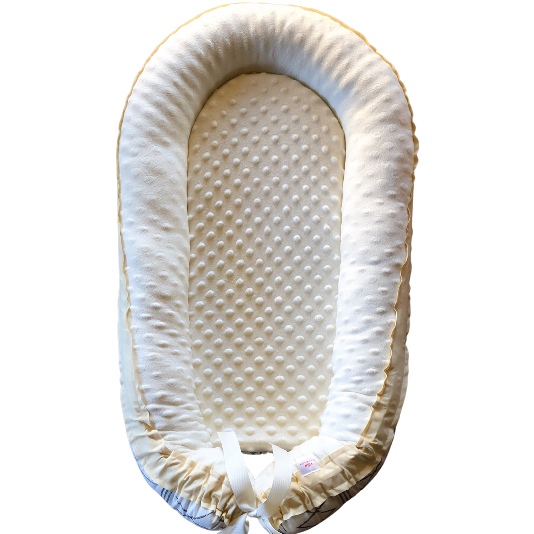 Give your little one a cozy place to lounge with our handmade Baby Nest. Thoughtfully designed to mimic the comforting feel of the womb, this nest creates a soft and secure spot for supervised awake time only. It’s reversible, featuring a custom-printed eco-friendly cotton fabric on one side and ultra-soft minky on the other. The bottom is secured with Velcro for easy removal of the mattress insert when it’s time to wash. Each Baby Nest is handmade and filled with hypoallergenic polyester fibers for comfort and support.